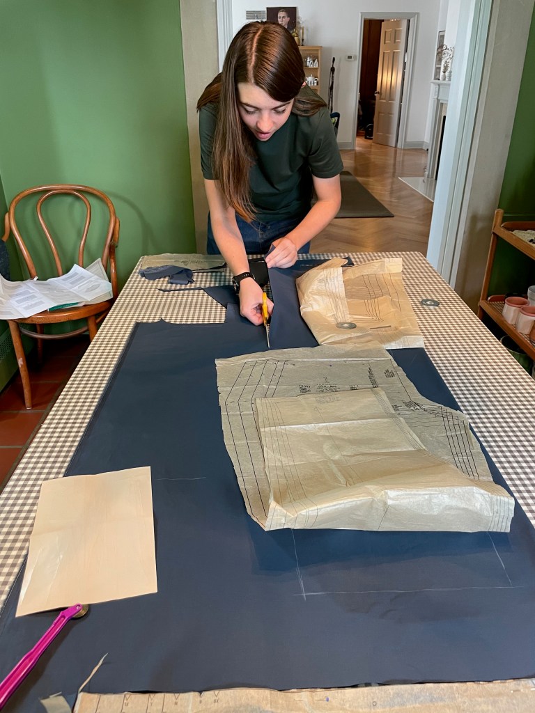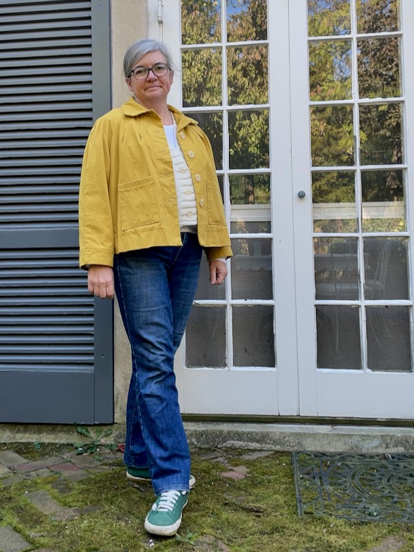 First I made a jacket – a new pattern called the Jan Jacket. I used some of the fabric from my Japan shopping spree – it’s a crisp, heavy canvas. I like the starburst darts around the neck of this pattern.