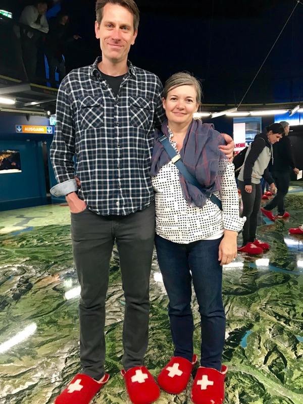 We went to the Transportation Museum in Lucern over the weekend. The big map of Switzerland is one of my favorite spots. Everyone has to put big wool slippers on to protect the map.