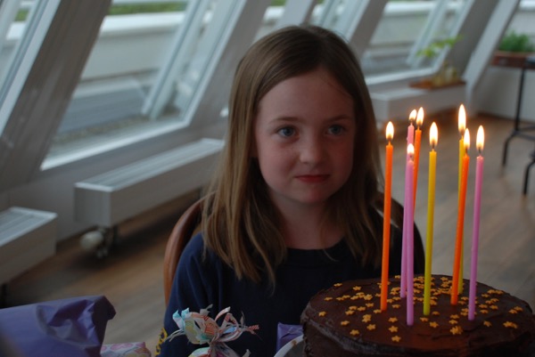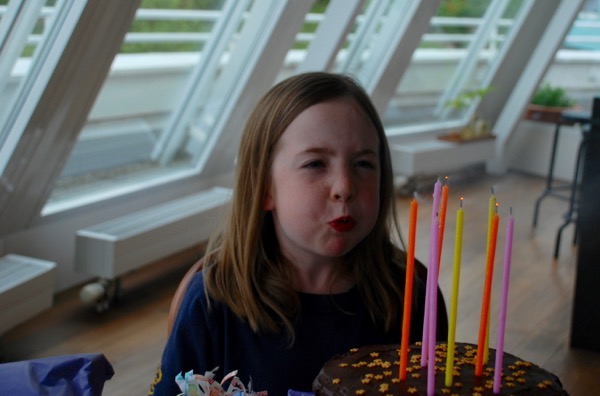 Did you notice I only put seven candles on the cake? I didn’t realize until after she blew them out and I was taking them off. Oops. I guess my subconscious isn’t ready to believe she is eight.